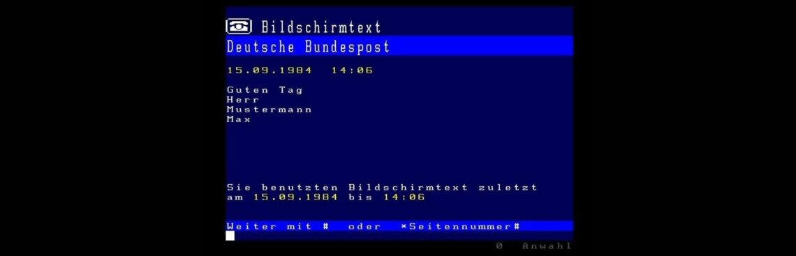 Eines davon war „BTX“, der Bildschirmtext. Kann sich daran noch jemand erinnern? Das war ein interaktiver Online-Dienst der Anfang der 1980er-Jahre eingeführt wurde. Ein Fernseher wurde mit einem Modem und einer Tastatur verbunden und dann konnte man auf Seiten, die im Teletext-Design gestaltet waren, Nachrichten lesen, Online-Banking machen, Reisebuchungen vornehmen, Bestellungen aufgeben, Börsenkurse verfolgen usw.